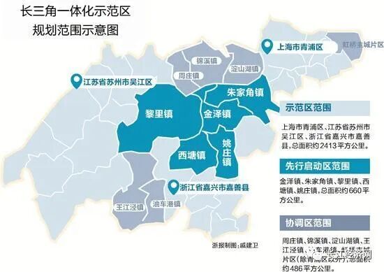值得一提的是,为了水域保护等需求,此次示范区总规,还新增了规划协调区。紧邻示范区的虹桥主城片区除青浦区以外区域、嘉兴市嵌入示范区范围内的王江泾、油车港镇以及昆山市毗邻淀山湖的锦溪、周庄、淀山湖镇等三个区域,作为规划协调区(约486平方公里)予以纳入。