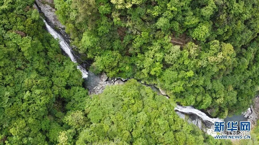 这是黄山市休宁县六股尖一处瀑布(5月13日摄,无人机照片)。