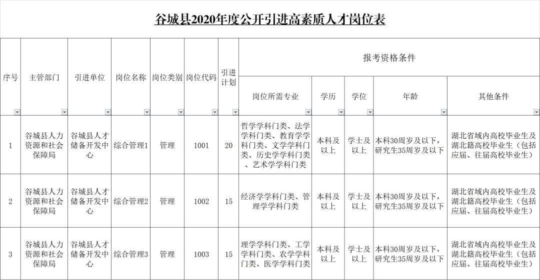 经谷城县委常委会研究决定,面向社会公开引进一批高素质人才。现将有关事项公告如下:
