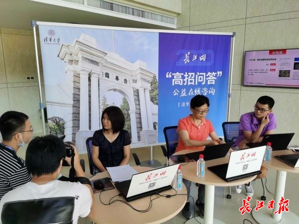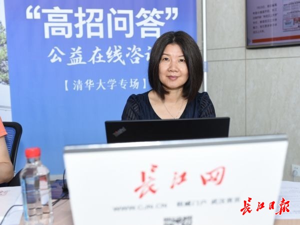 清华大学湖北招生组教师郭朝晖上线长江网现场。记者金思柳 摄