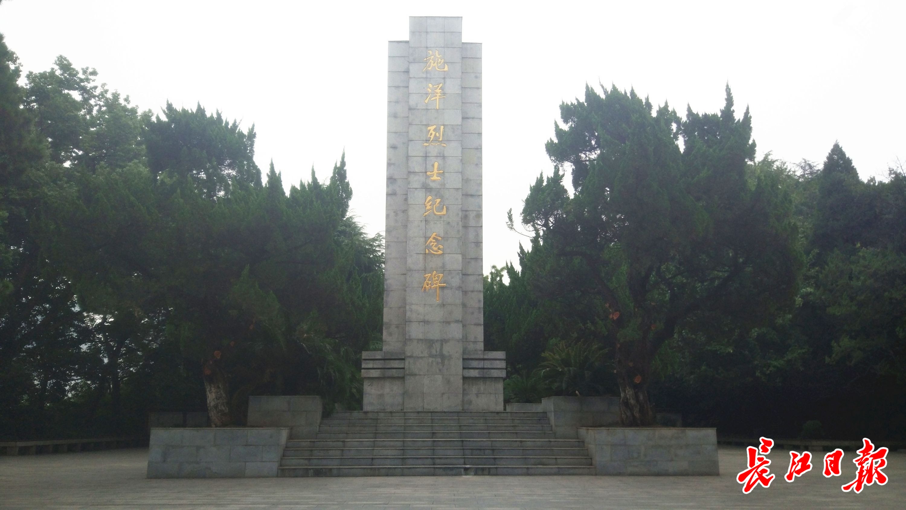“施洋烈士纪念碑高10.8米,很少有人留意纪念碑前为什么建了这么多级台阶。”施洋烈士陵园管理处主任治鲲告诉记者,沿着牌楼正后方到达施洋烈士纪念碑,需要绕过铸铜浮雕再走完81级台阶。