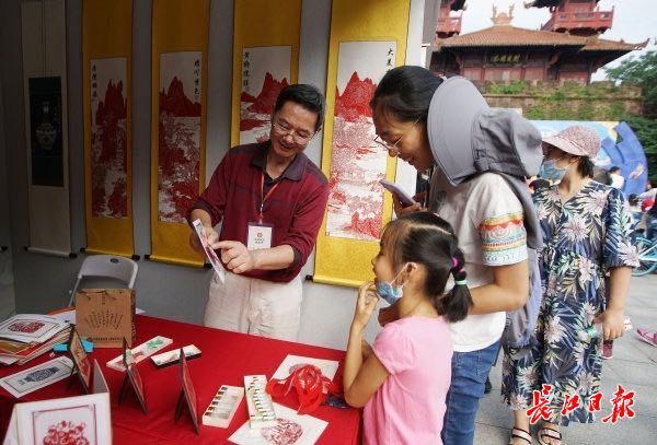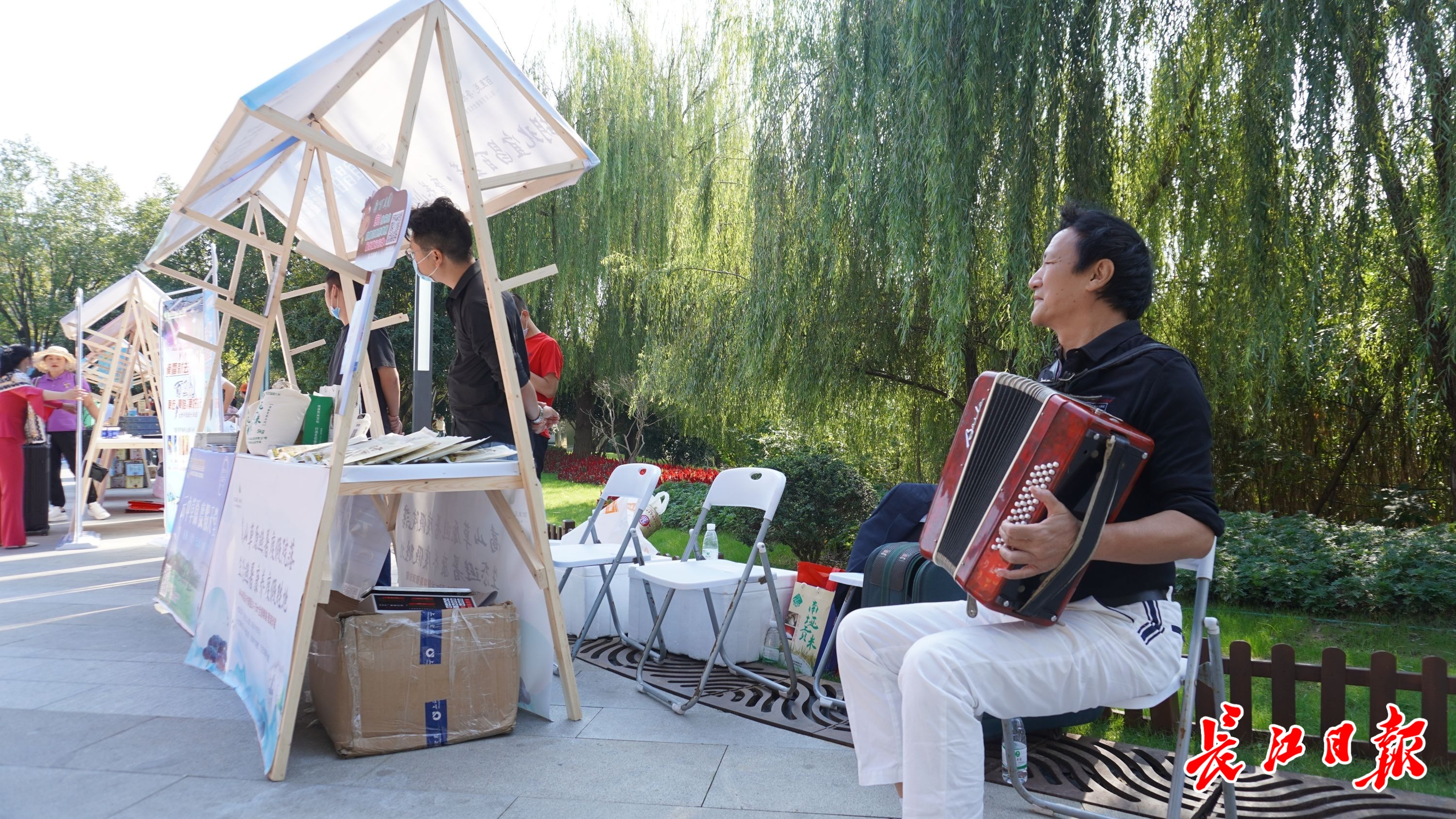 如果自力市集是异国风,相隔几百米的东湖绿道湖光序曲广场上,则散发着浓浓国潮风。来自全国的手作人和农特产品会聚一堂,罗田板栗、手工莜面、大别山柿子、中华老字号白鸭……摊主热心为游客介绍特产,招呼游客免费试尝。