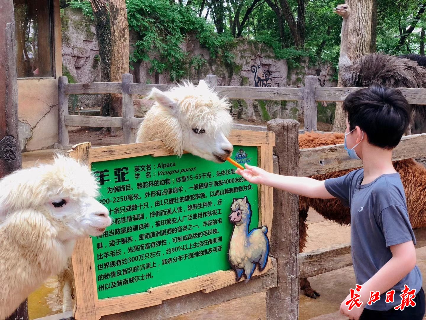 在东湖海洋乐园门口,萌宠大巡游吸引许多大小朋友驻足。羊驼、小鹿等性情温顺的小动物现场卖萌,和游客零距离互动。饲养员在一旁维持秩序,保护游客和动物的安全。