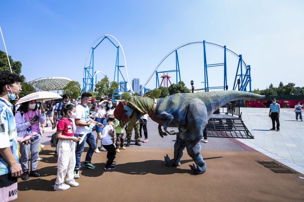 刚坐完木翼双龙的乐观是一名研二学生,他兴奋地说:“刺激的高空项目是我的最爱。过节期间,欢乐谷新增了很多街头表演,过节的氛围更浓了。”