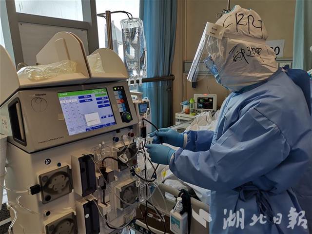 通过血液净化治疗,程春生的炎症因子没有再增加,治疗效果不错。护肾小分队将这一成功病例在疑难重症讨论会上汇报,接着再接再厉,又完成了第二例、第三例。高峰期,光谷院区17台血液透析机满负荷运转,4位肾内科医生、20多位护士最多的一天为34名患者做治疗。