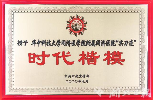 湖北日报讯(记者龙华、通讯员童萱)9月23日,中共中央宣传部发布抗疫一线医务人员英雄群体的先进事迹,华中科技大学同济医学院附属同济医院“尖刀连”作为武汉抗疫主阵地的“生命特战队”,被授予“时代楷模”称号。