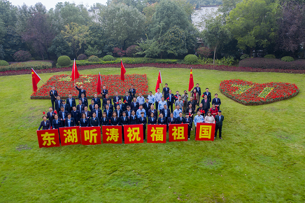 从梨园大门进入东湖后,一面五星红旗和数字“71”映入眼帘,庆祝共和国71周岁生日。