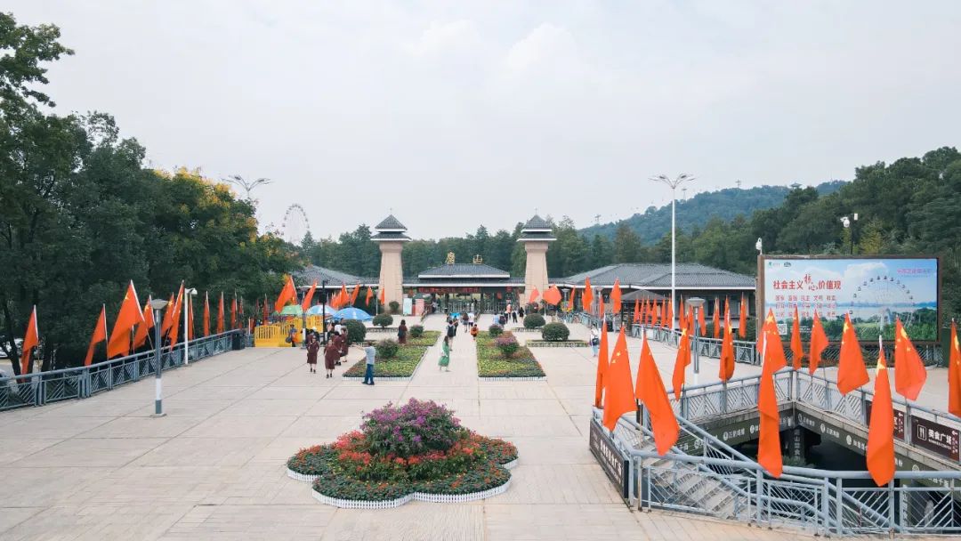 随着国庆的临近,东湖绿道上不仅挂上红色的国旗与灯笼,东湖各景区门口也都布置上时令花卉,品种多以红色的一串红为主,分外喜庆。