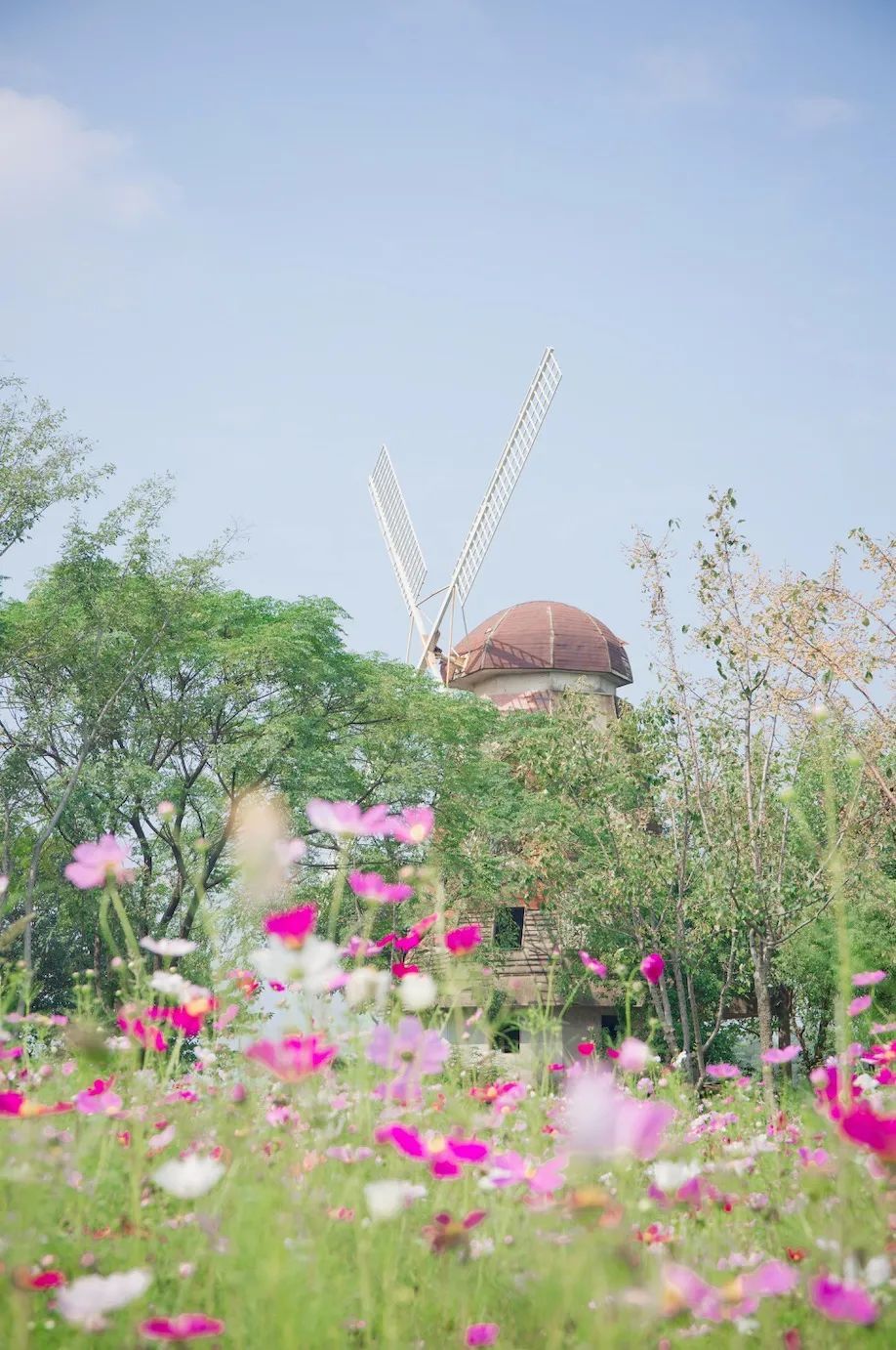 绿道二期万国公园梯田花海播撒的波斯菊现在花开正盛,粉粉嫩嫩、白白净净、粉白相间的花朵,再点缀玫红色的花,层次丰富,随风摇曳。
