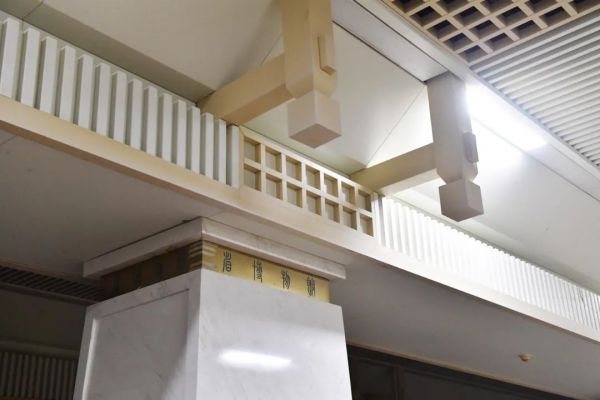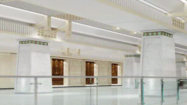 8号线二期省博站站厅柱子与省博物馆建筑相似。