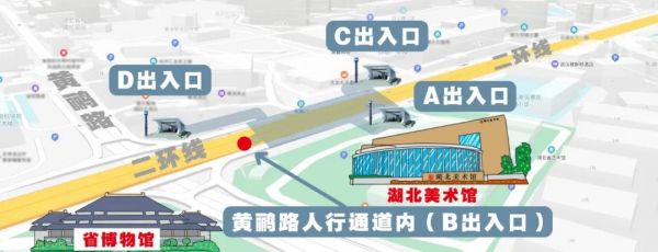8号线二期省博湖北日报站D出入口位于马路对面。 其中,黄鹂路地下通道的入口之一,就距离省博物馆大门几步路的距离。黄鹂路、东湖路地下通道,分别有两个出入口,这也意味着今后通过2个地下通道也可以直达地铁站,无形之中为车站增加4个出入口。