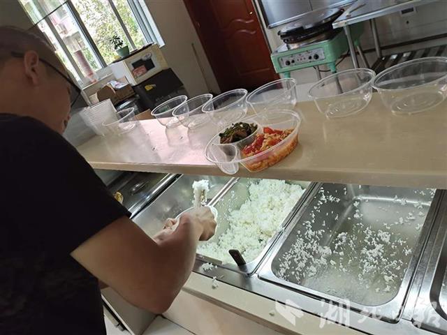 刘先成介绍,由于疫情防控所需,省司法厅食堂目前还未恢复堂食。到了饭点,职工们会按照楼层分时分批到食堂打饭。食堂为大家提供一次性饭盒,但职工们大多自觉选择从家里自带饭盒,既节约又环保。