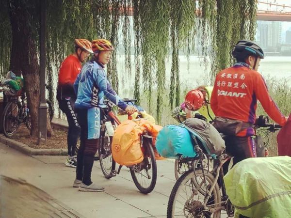 7日一大早,摄友“书香文兰”到汉阳江滩晨练,偶遇了几位安徽淮南骑行联盟会的几位骑友,他们一路骑行来到武汉,稍作休整后将继续前行。在鹦鹉洲长江大桥下,他们欣赏汉阳江滩美景,感叹武汉重振后的繁华,武汉吸引了越来越多的外地游客来玩。