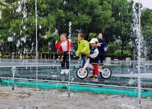 孩子们在汉口江滩玻璃广场上玩耍。城市摄影队和合 摄