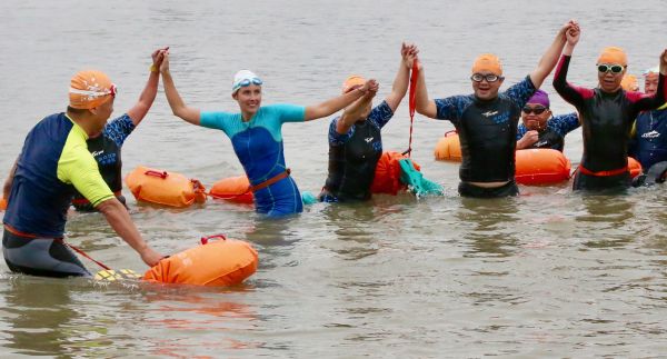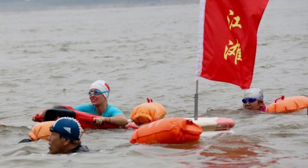 凯瑟琳和冬泳队员一起横渡长江。城市摄影队李东辉 摄