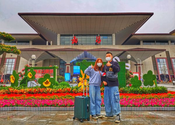 武汉站前合个影。城市摄影队刘经纬 摄