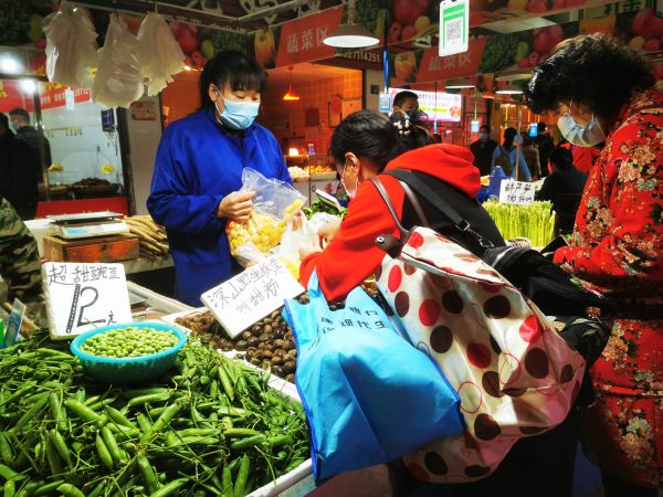 青山区三弓路的菜场里买个菜。城市摄影队风姿 摄
