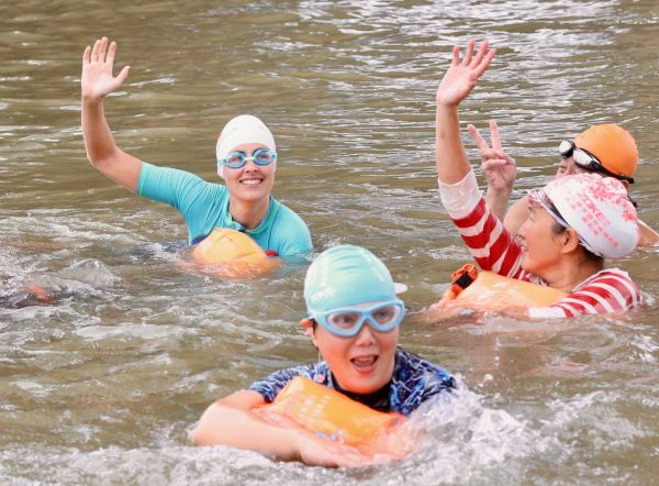 队员们在水中招手打招呼。城市摄影队李东辉 摄