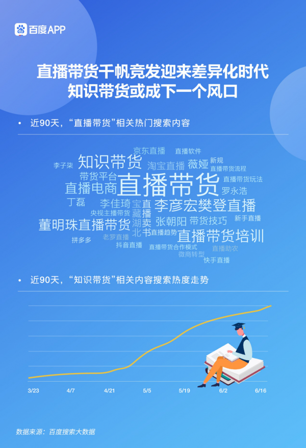 直播带货已迎来差异化时代,如何从千帆竞发中突出重围,抢占下一个风口?“知识带货”近90天快速攀升的搜索热度或许给出了答案。