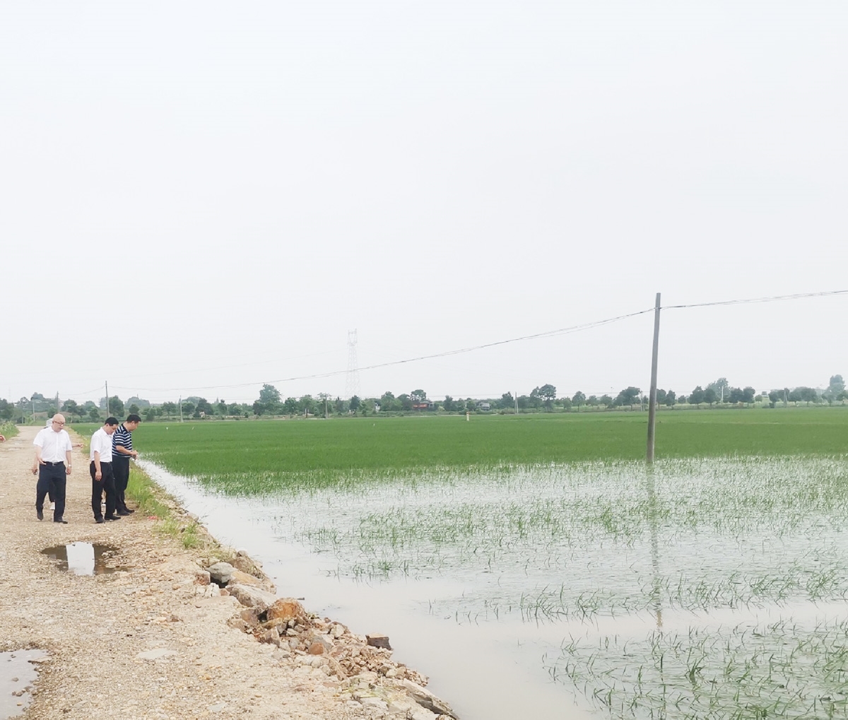 中华财险湖北省分公司党委书记、总经理夏昌军一行赴黄梅县查看水稻受灾情况。 (吕珊 摄)