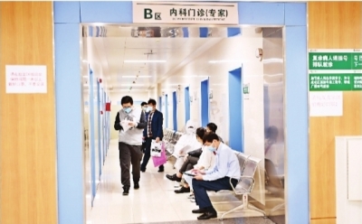 同济医院中法新城院区内科门诊,市民等待接诊。