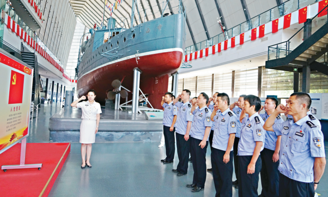 3日,众多党员干部到中山舰博物馆开展重温入党誓词、缅怀抗战英烈主题党日活动。