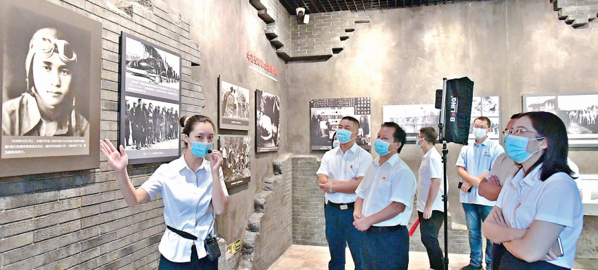 3日,市委党史研究室副主任宋健在姚家山新四军第五师历史陈列馆内,介绍新四军当年抗战的故事。