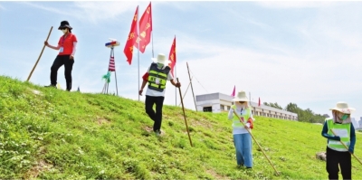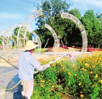■ 景区园丁烈日下辛勤护花