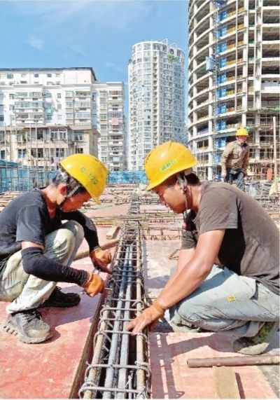 长江日报讯(记者谭德磊 通讯员刘金峰 徐正需)2日下午3时30分许,长江日报记者来到武昌区中北路襄阳大厦项目建设现场,此时烈日当空,300多名工人正冒着高温紧张施工。