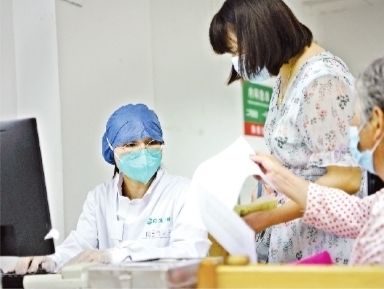 下午3时,气温高达38℃,记者走进江汉区新华街社区卫生服务中心,刚步入大门,护士就拦下记者测体温。预检分诊台旁边设有无接触式自动手部消毒站,将手放在机器下方,通过感应自动流出免水洗消毒凝胶。65岁的居民罗雨平告诉记者:“社区卫生服务中心为我们考虑得很周到全面,这么热的天,他们还穿得这么严实,防控认真细心,为我们把好健康关,看到这样的严密防控,我就医没有了顾虑。”
