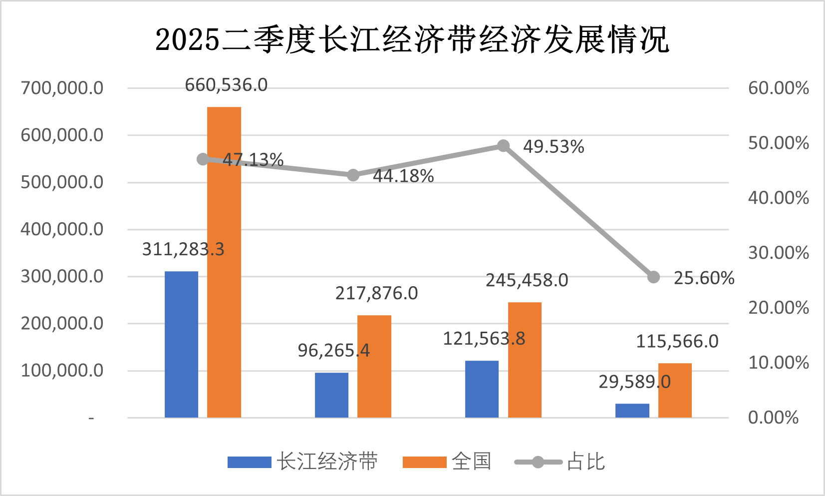 表2 2025年上半年长江经济带11个省市经济总量排名