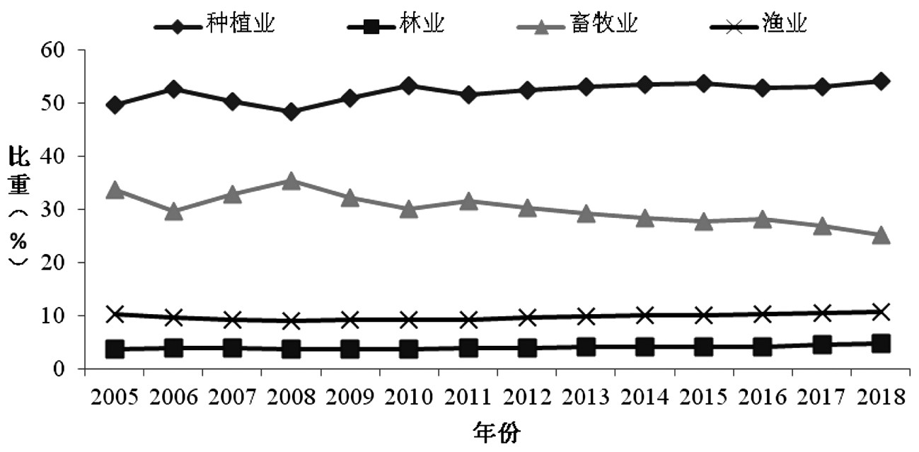 图1 2005—2018年中国农业总产值构成