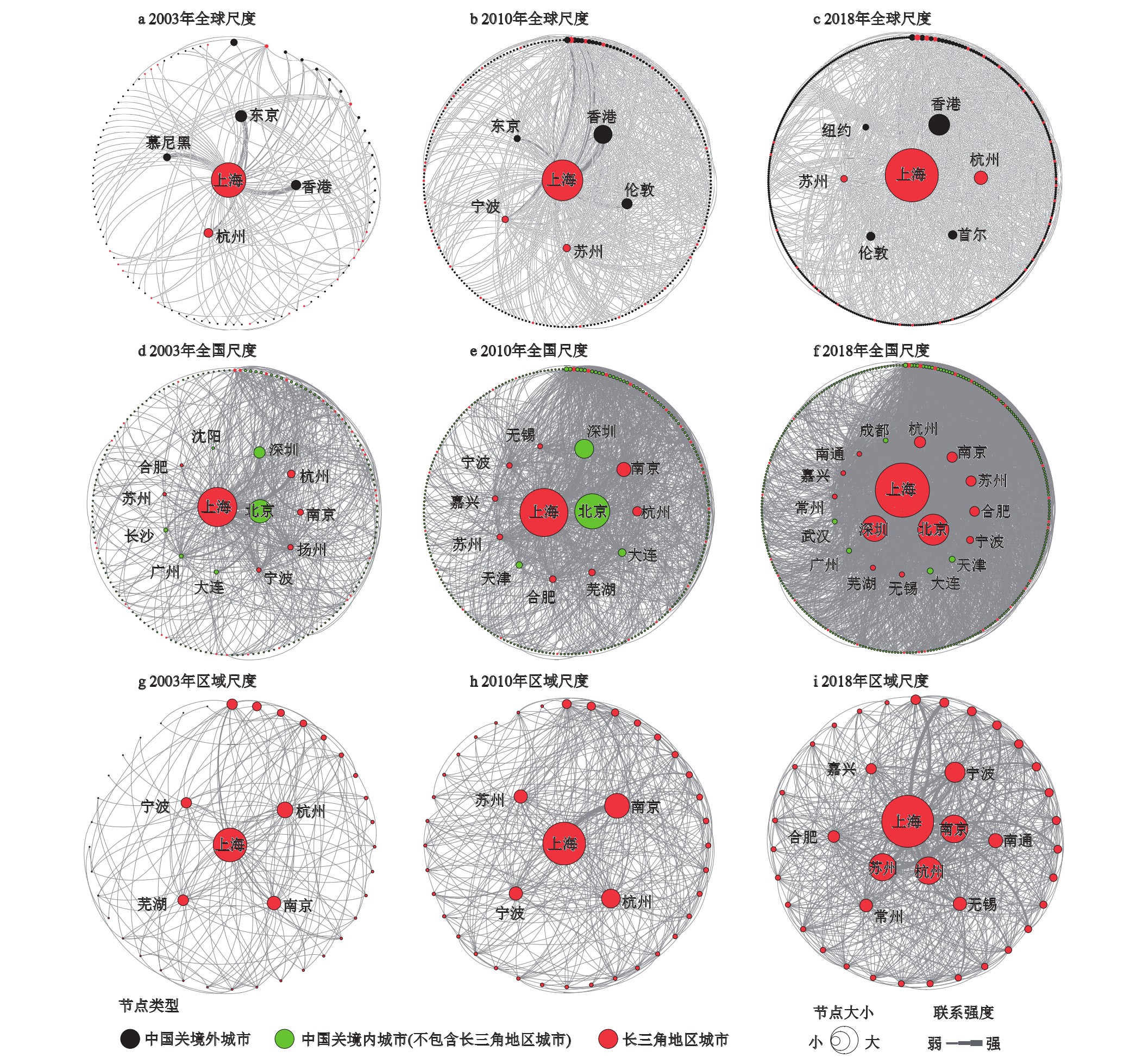 图1 2003—2018年长三角不同尺度城市网络