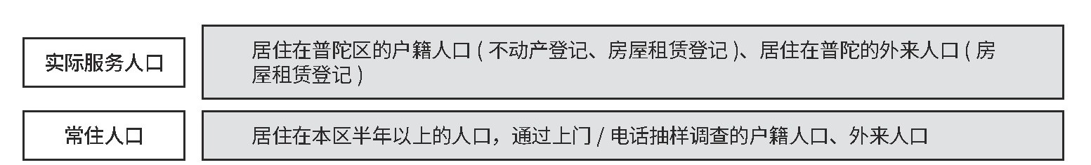 服务的人口规模 | 常住人口 | 当前户籍人口、已办理居住证的外来人口 |
