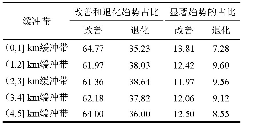 表3不同缓冲带植被覆盖变化面积和显著趋势占比/%