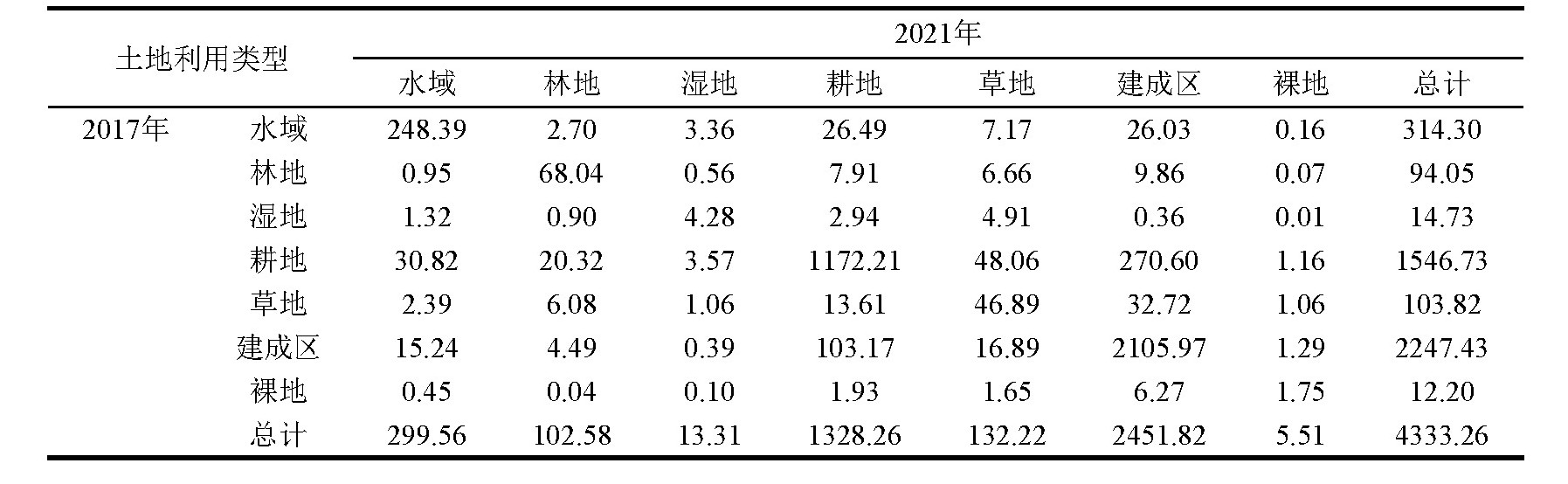 表1 长江江苏段滨岸陆域土地利用转移/km2