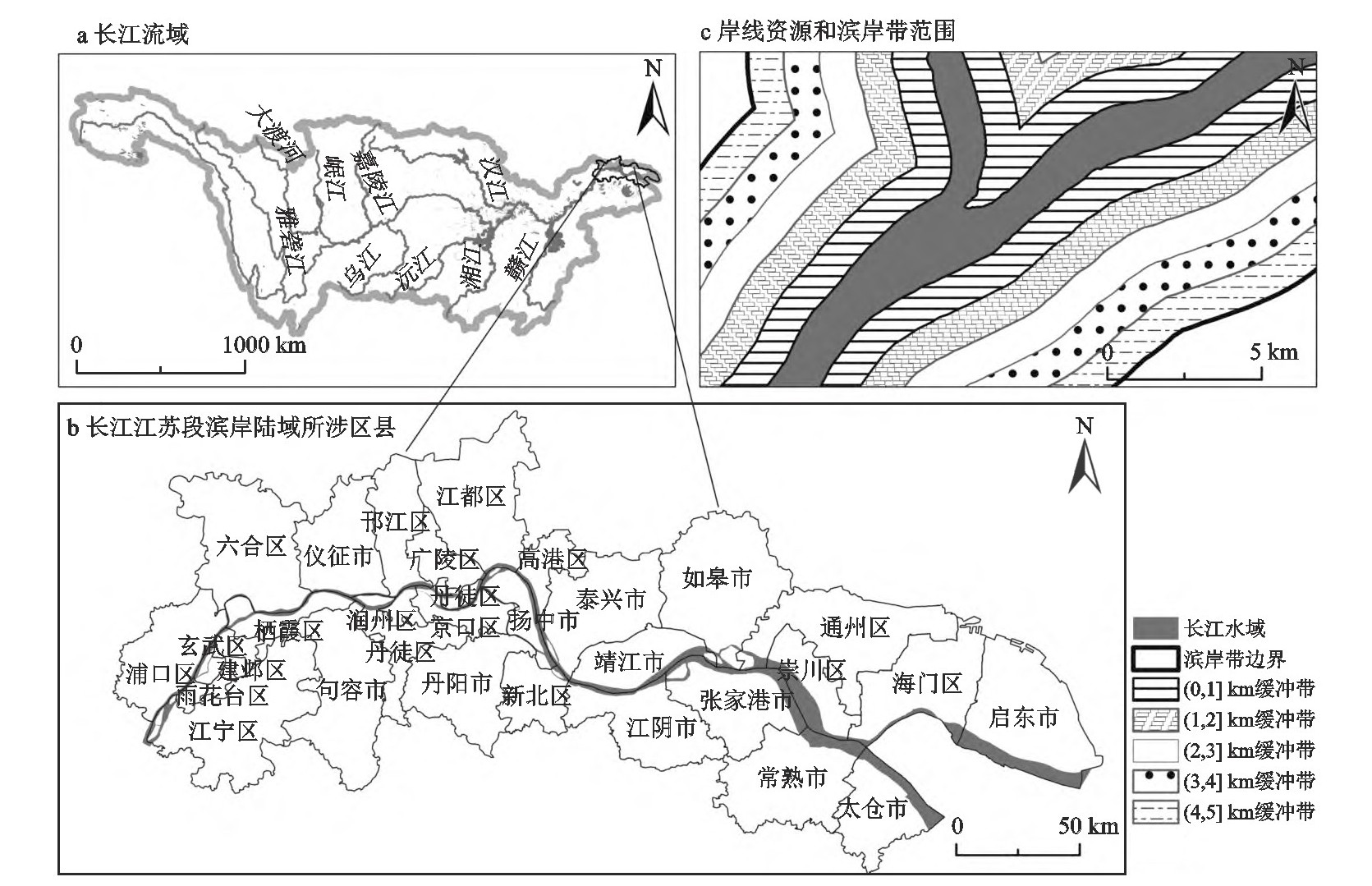 图1长江江苏段滨岸陆域区位