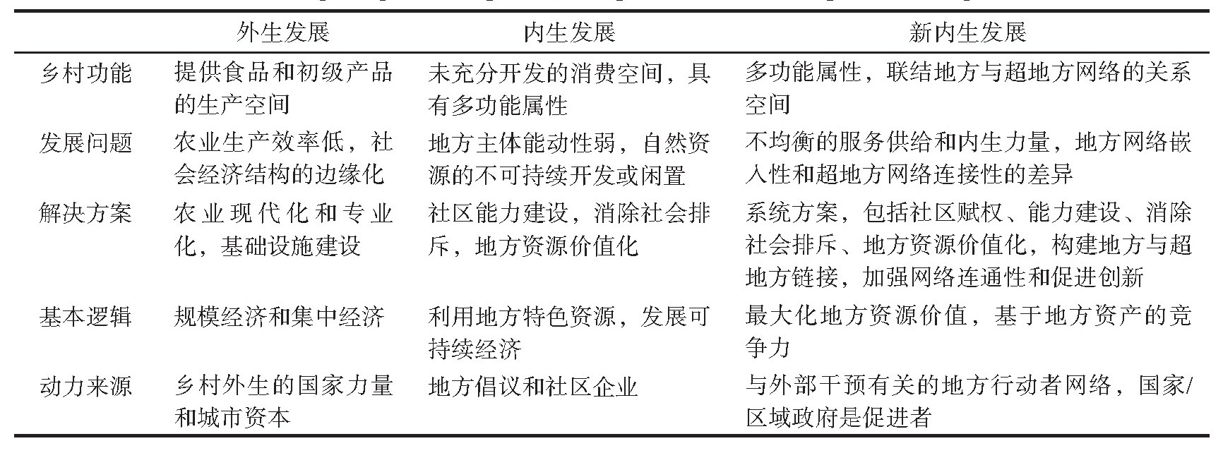 作为一个高度“经验主义”的理论,新内生发展是对传统乡村发展模式及“外生—内生”二元主义批判基础上产生的,具有明显的“后验式”色彩[32,42]。如表1所示,新内生范式倾向于将乡村理解为社会关系的空间,这种基于“关系思维”的观点挑战了原有乡村发展范式中的“二元对立”,强调内外部资源和行动在跨尺度网络中的高效链接。换言之,新内生发展是乡村地方与超地方网络联结作用的结果,单纯依靠乡村内生力量难以激活本地资源,只有依靠地方与超地方网络的跨尺度互动,才能获取区域外资源,与乡村地方资产相匹配,以推动社会资源的可持续开发[8,12,16,20,43]。