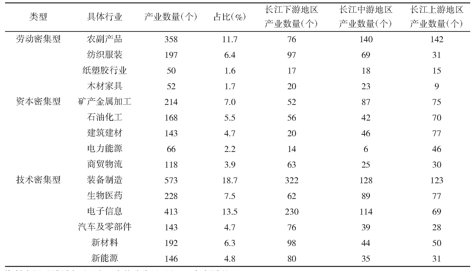 产业分工是长江经济带区域协同融通发展的载体性条件,各类资源流动都要依托于产业价值链的分工体系。根据最新修订的《中国开发区审核公告目录(2018年版)》,可以发现长江上中下游地区开发区的优势产业总体上依次呈现出资本密集型、劳动密集型和技术密集型的特征,主导产业数量占比分别为42%、38%和51%;具体到15类行业,上游地区开发区主导产业为农副产品、矿产金属加工等,中游地区开发区主导产业为农副产品、装备制造等,下游地区开发区主导产业为装备制造、电子信息等(见表1)。在这种产业价值链分工体系下,沿长江经济带各个省份的产业间关联效应得以发挥,进一步促进产业和市场分工的迂回化和专业化,不仅可以获得规模经济和范围经济,而且还可以积累人力资本和知识资本。同时,这种产业价值链分工体系也有利于推动产业梯度转移,促进区域间发展差异收敛。事实上,对主要处在工业化后期的东部地区而言,相对缺乏技术竞争力的产业,并非就一定是落后产业,而只是与本地区的发展环境和成本不再匹配,但若迁入仍处在工业化中期阶段的中西部地区,则可以继续延续产业生命周期,促进当地经济增长。其中关键在于进一步优化中西部地区的市场营商环境,提升承接产业转移能力,从而以深化产业价值链分工带动长江经济带区域协同融通发展(1)。